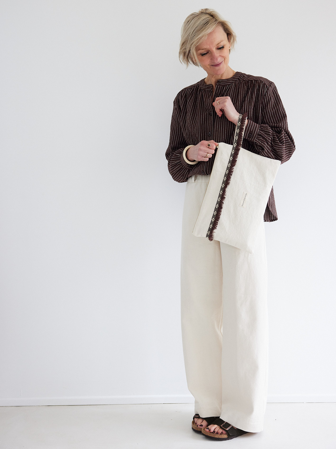 Le pantalon Bobo est un pantalon large, ultra confort à porter grâce à sa taille élastiquée. Réalisé en gabardine écrue lourde et souple, c’est un pantalon facile à porter, qui peut à la fois être chic ou cool en fonction de vos choix chaussures. Sur cette version, nous avons ajouté une fausse braguette, une poche plaquée dos et des passants.