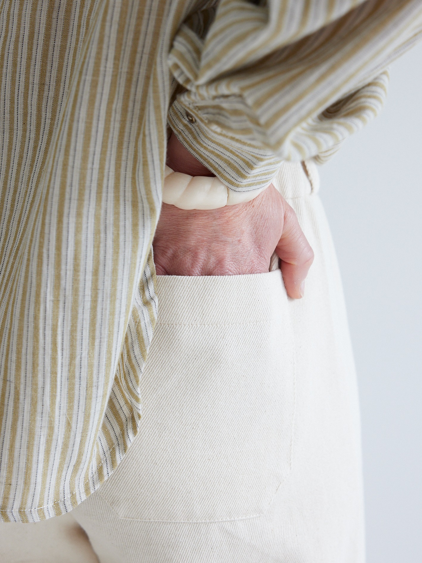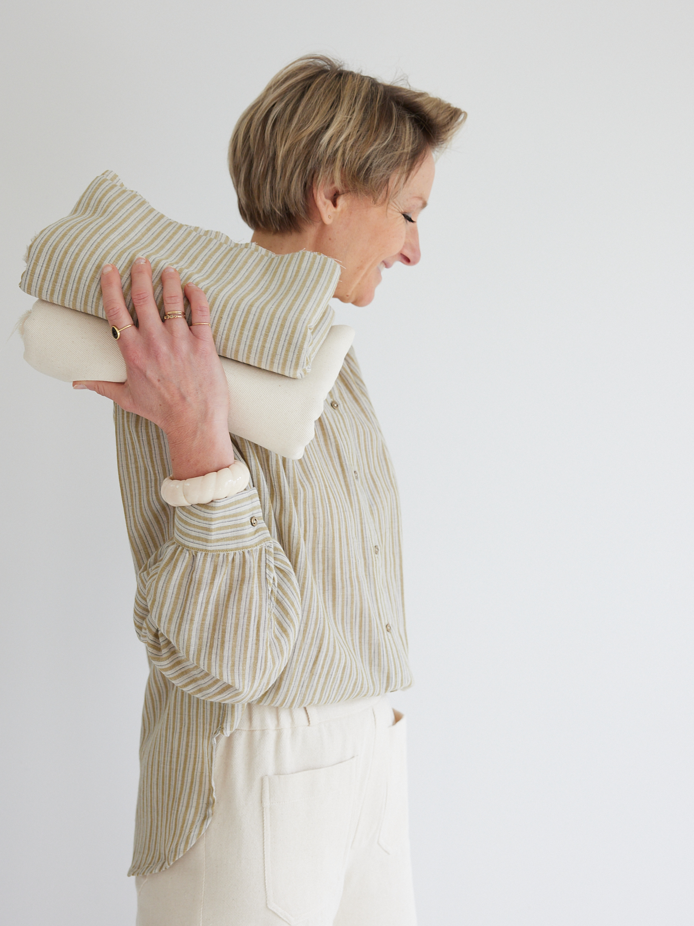 Matière du tissu : très beau coton rayé bronze & écru, 100% coton