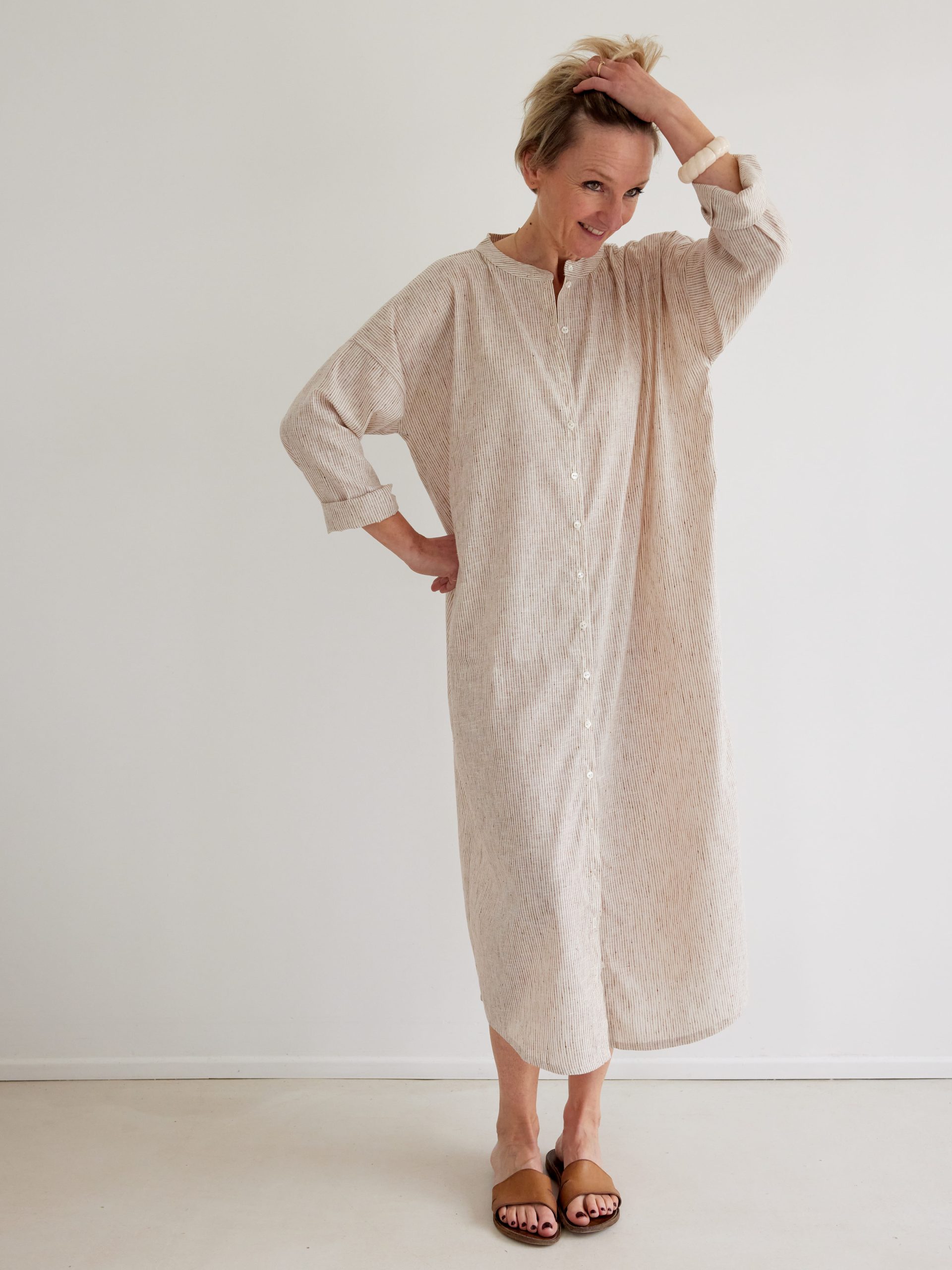 Format du coupon de tissu : 2.8m – permettant de coudre la blouse Allure prolongée en robe ou la chemise Essentielle prolongée en robe jusqu’à la taille XL
