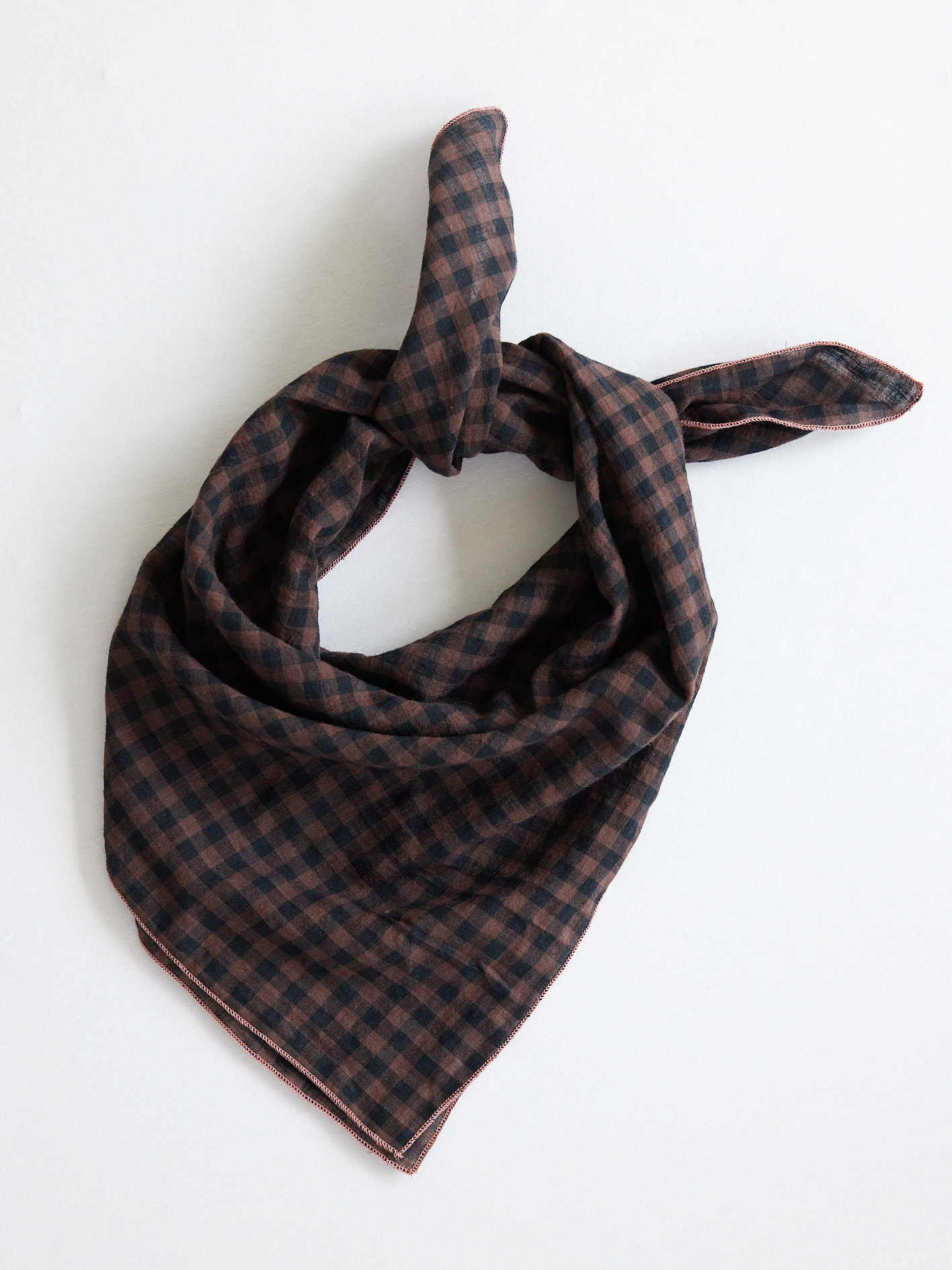 Foulard en coton khadi vichy encre & chocolat tissé à la main – cousu
