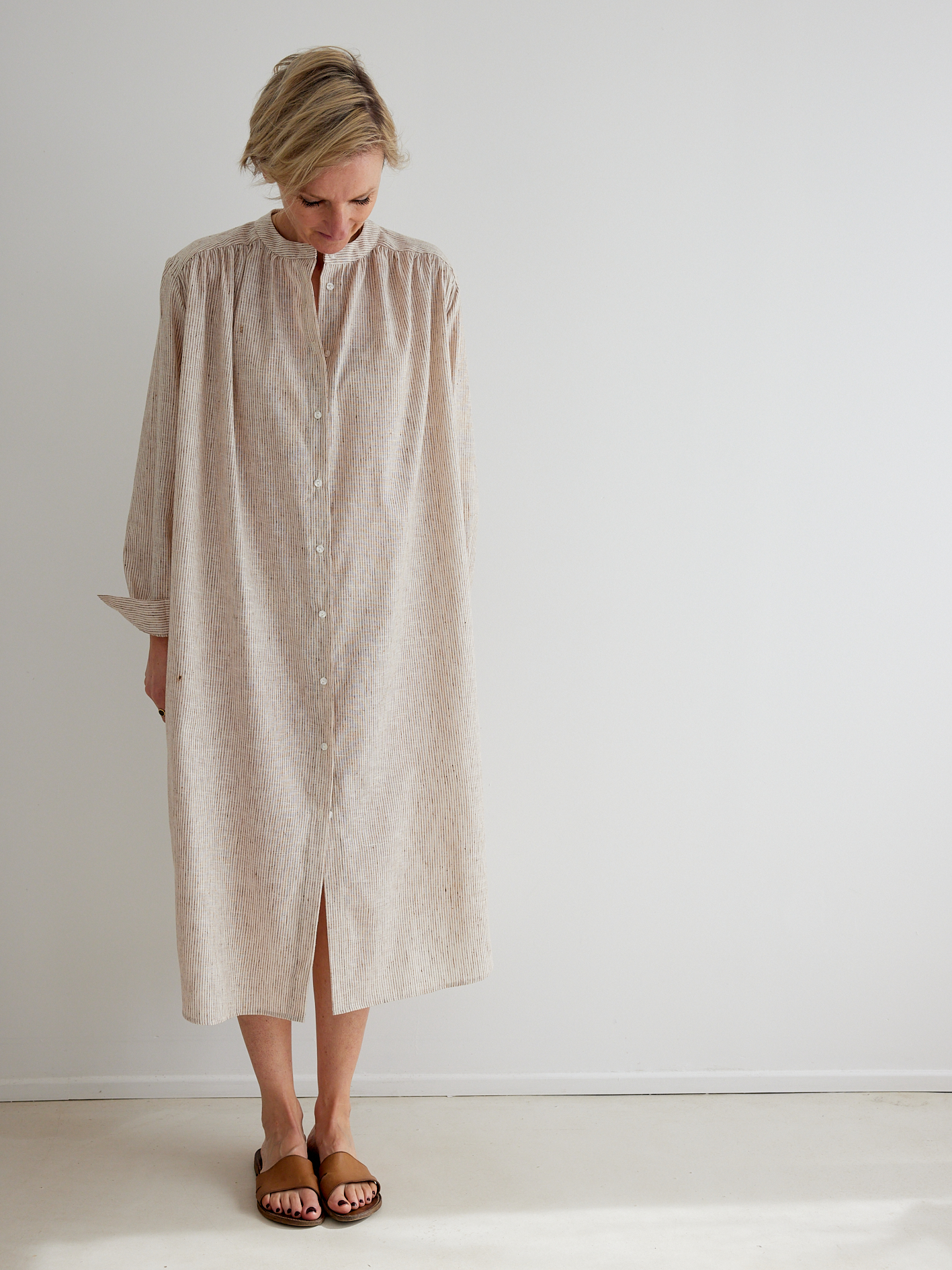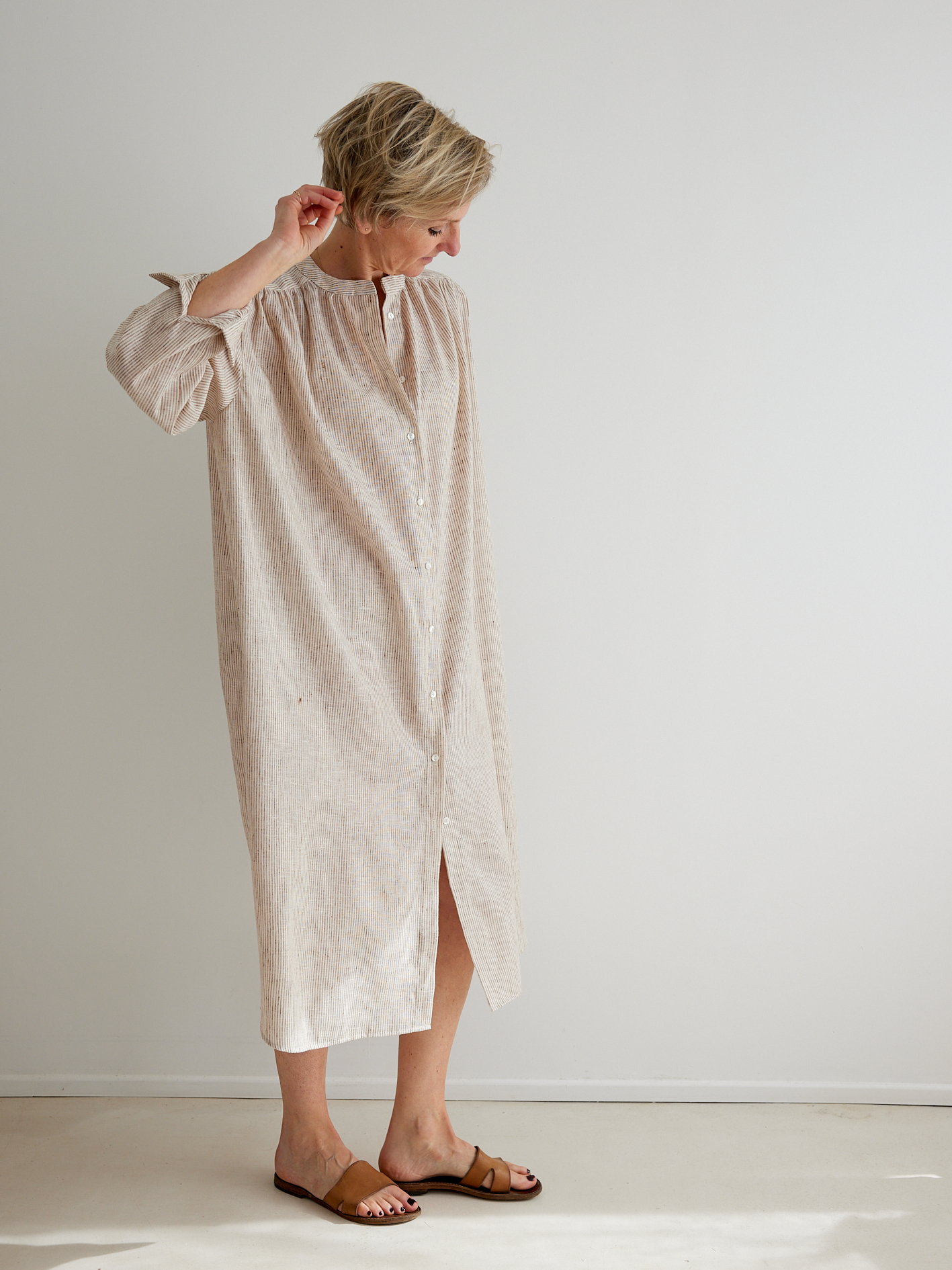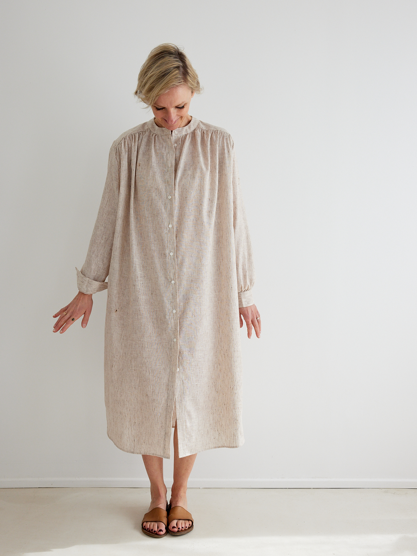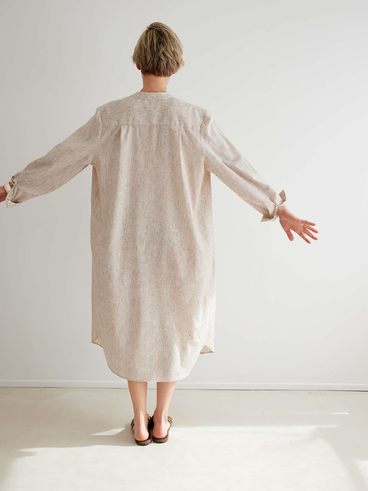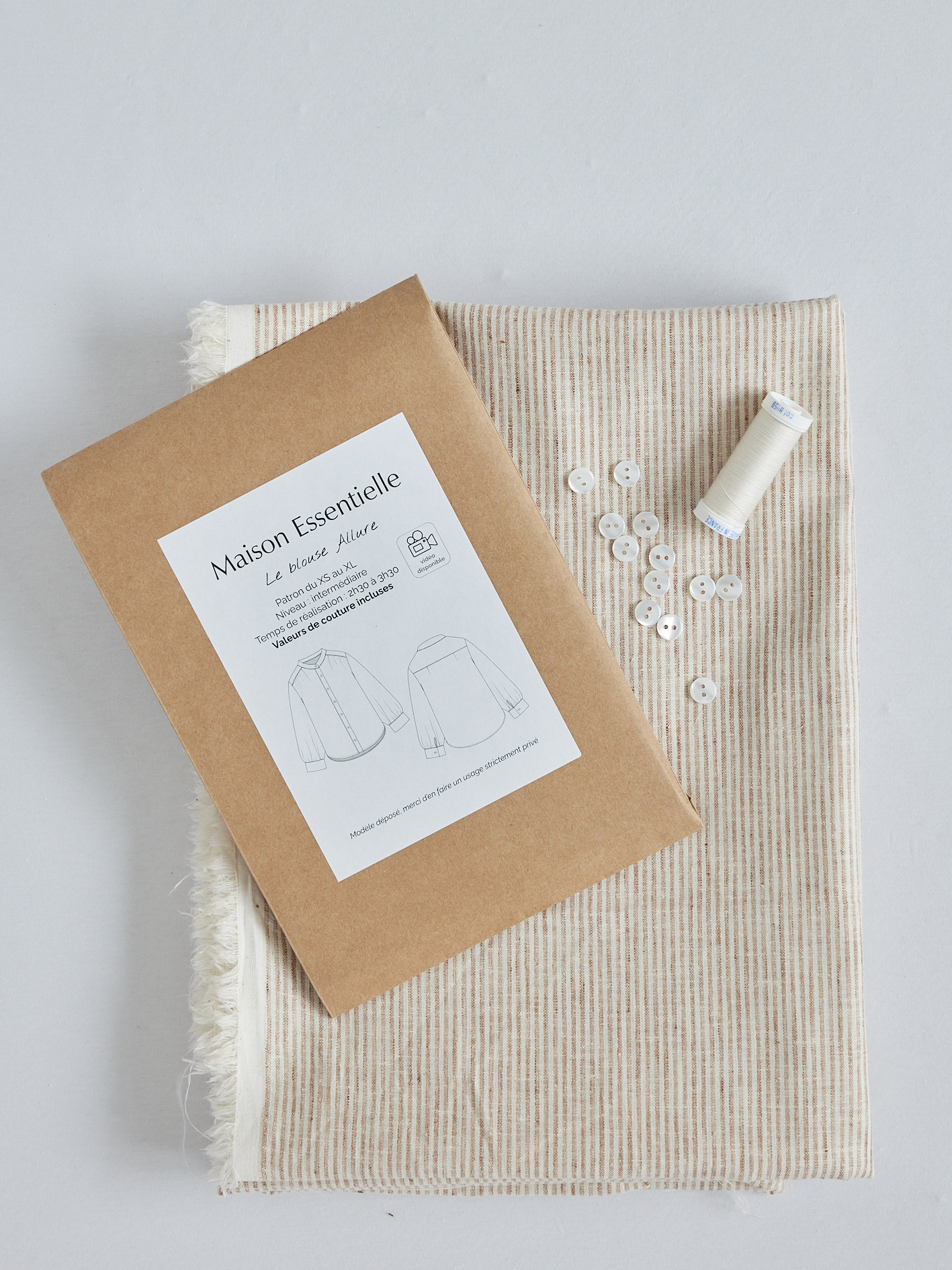 KIT À COUDRE – La robe Allure en coton fines rayures beige & écru