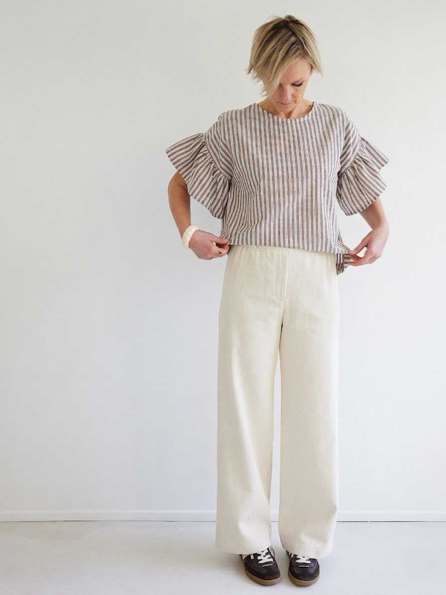 Un pantalon large facile à coudre en gabardine souple lavée, bio & française