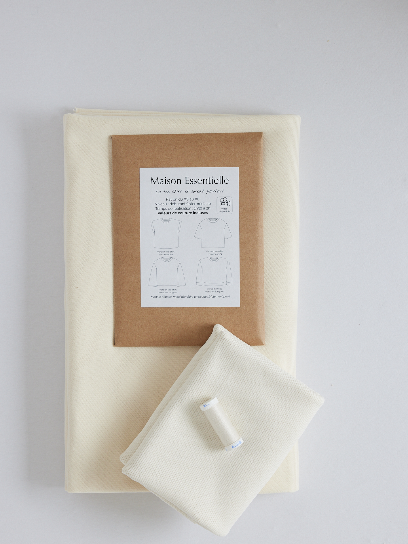 KIT À COUDRE – le sweat Parfait en molleton bio écru & bord-côtes écru Oekotex