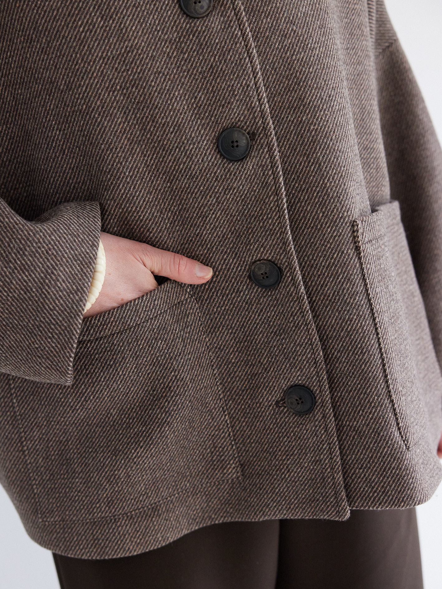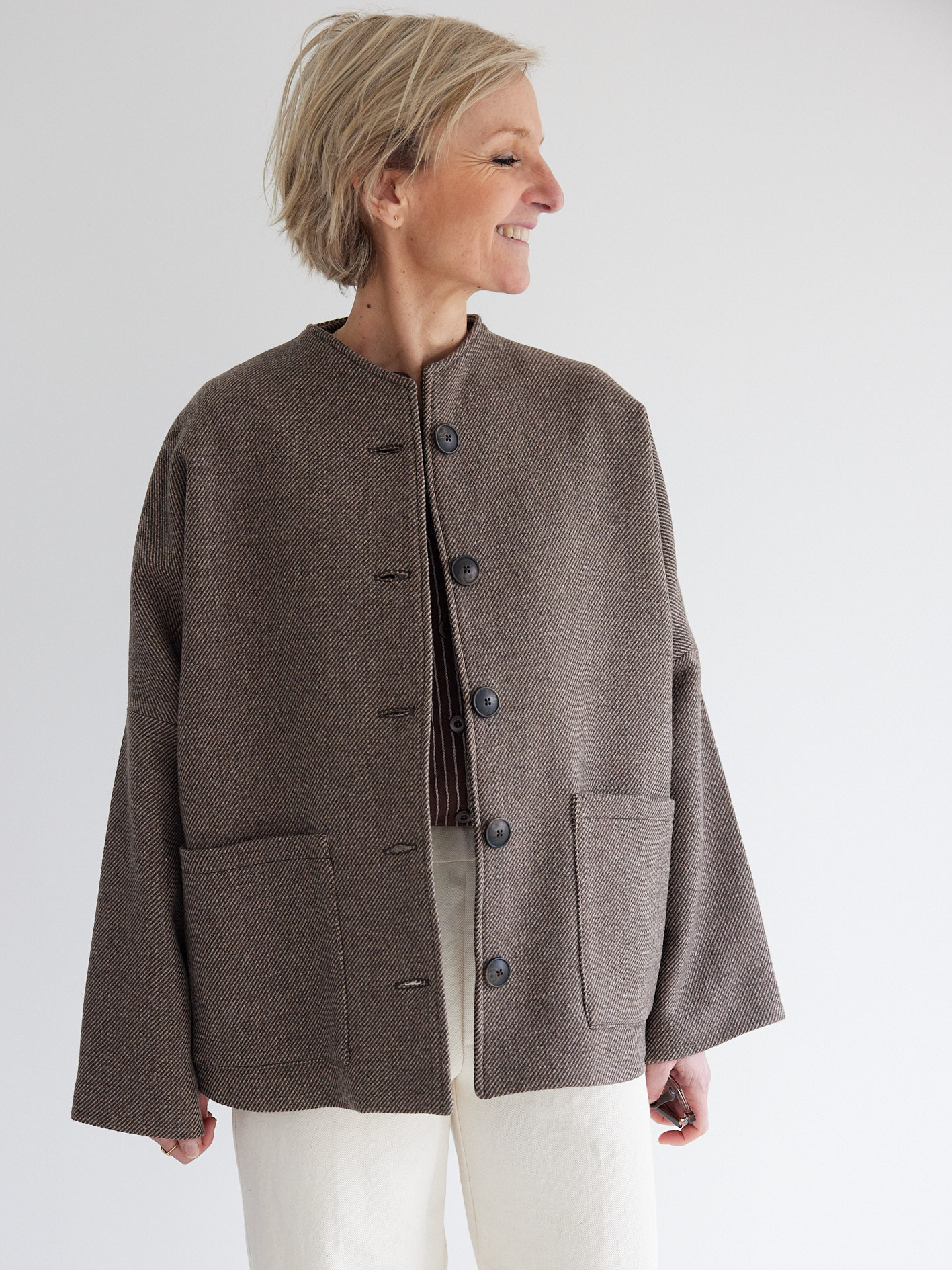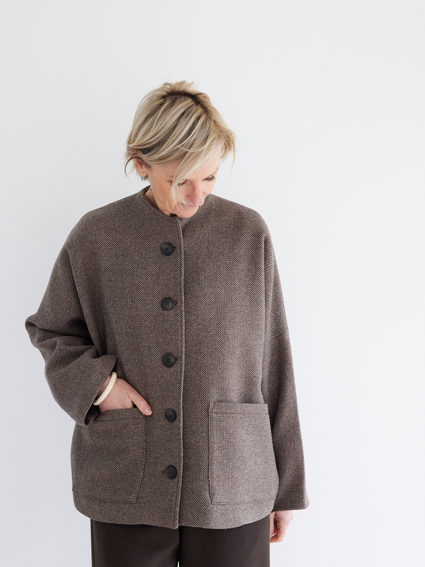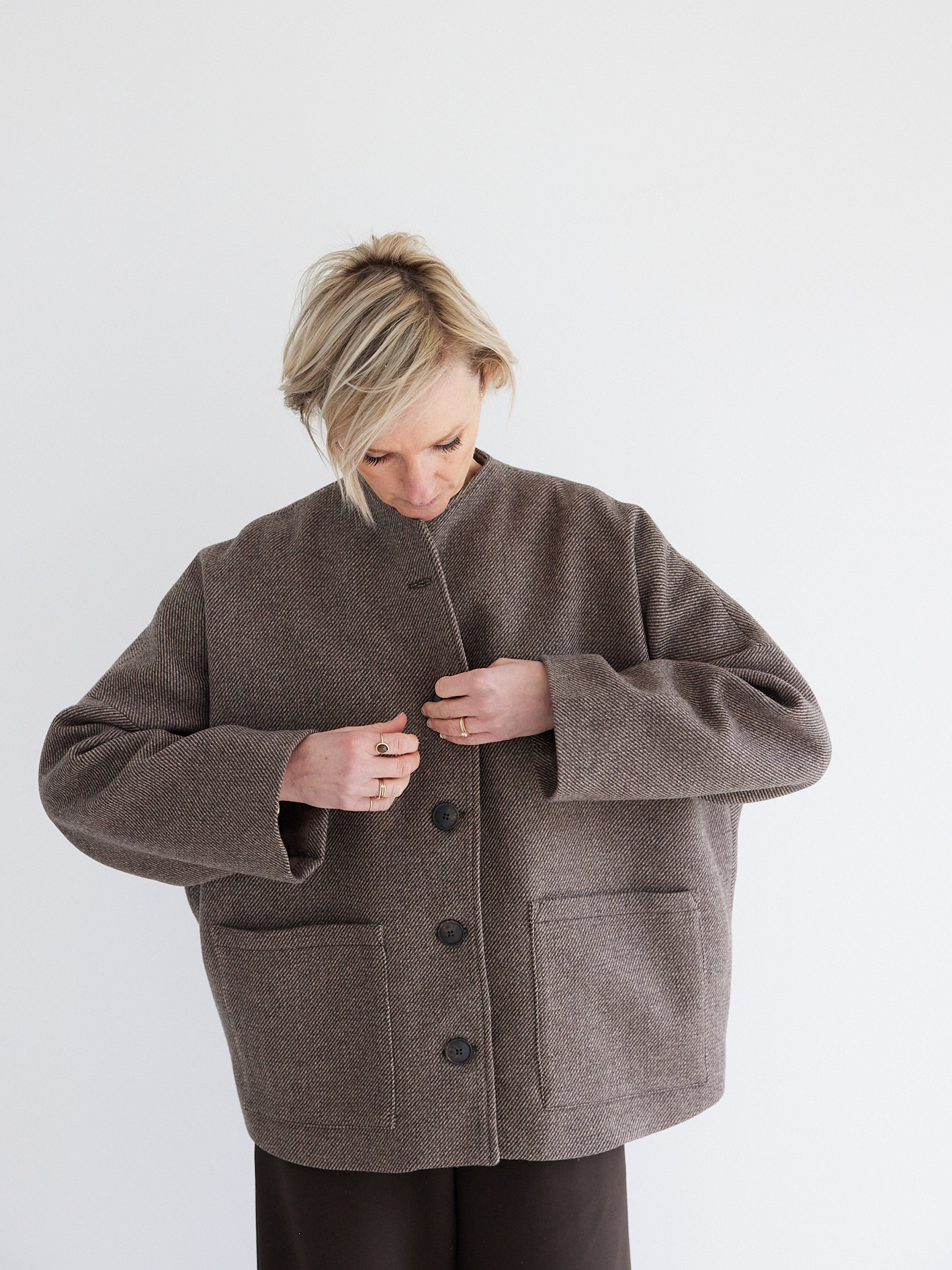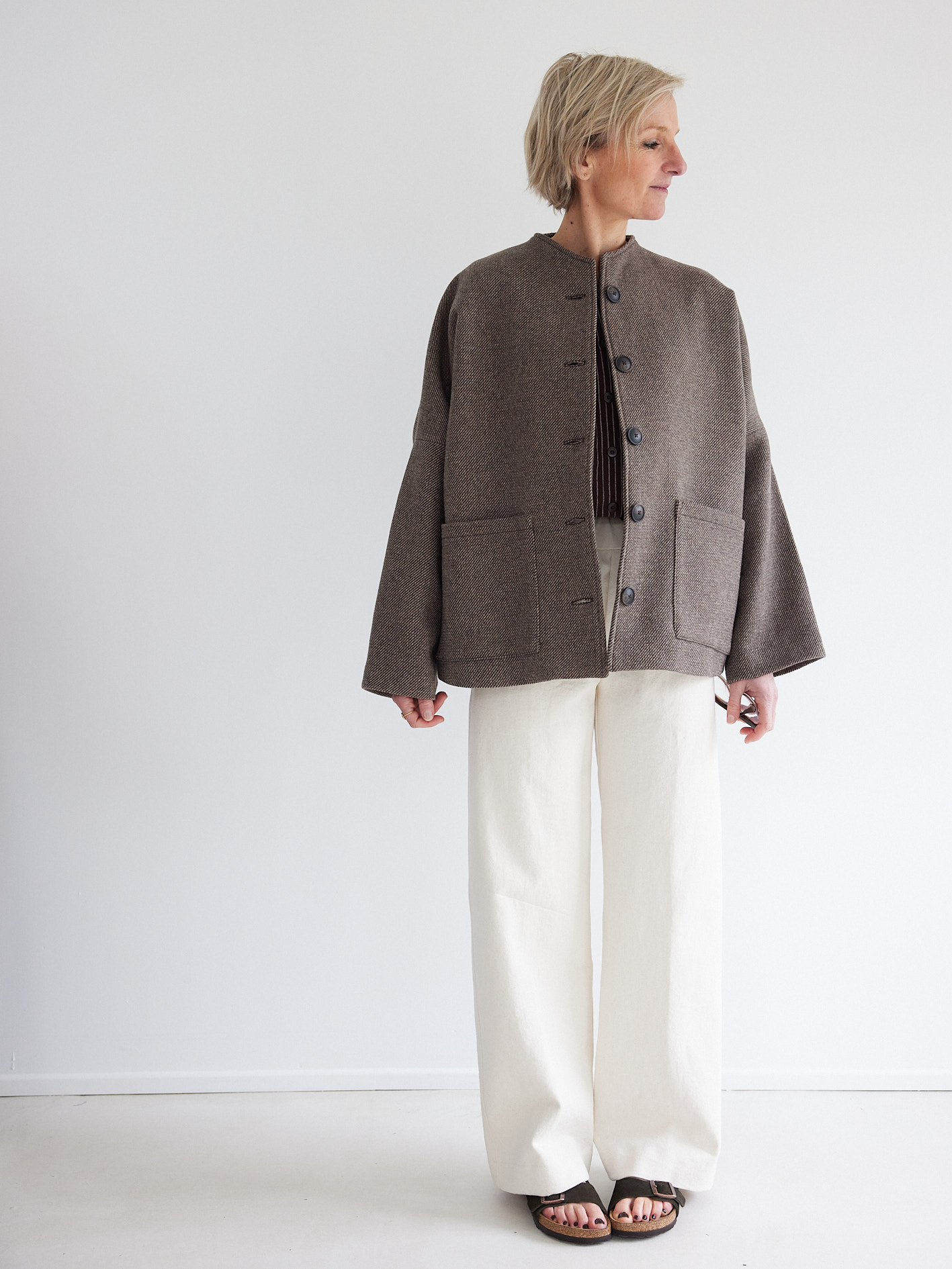 La veste Everyday en lainage chevron marron doublée - cousueLa veste Everyday en lainage chevron marron doublée – cousue