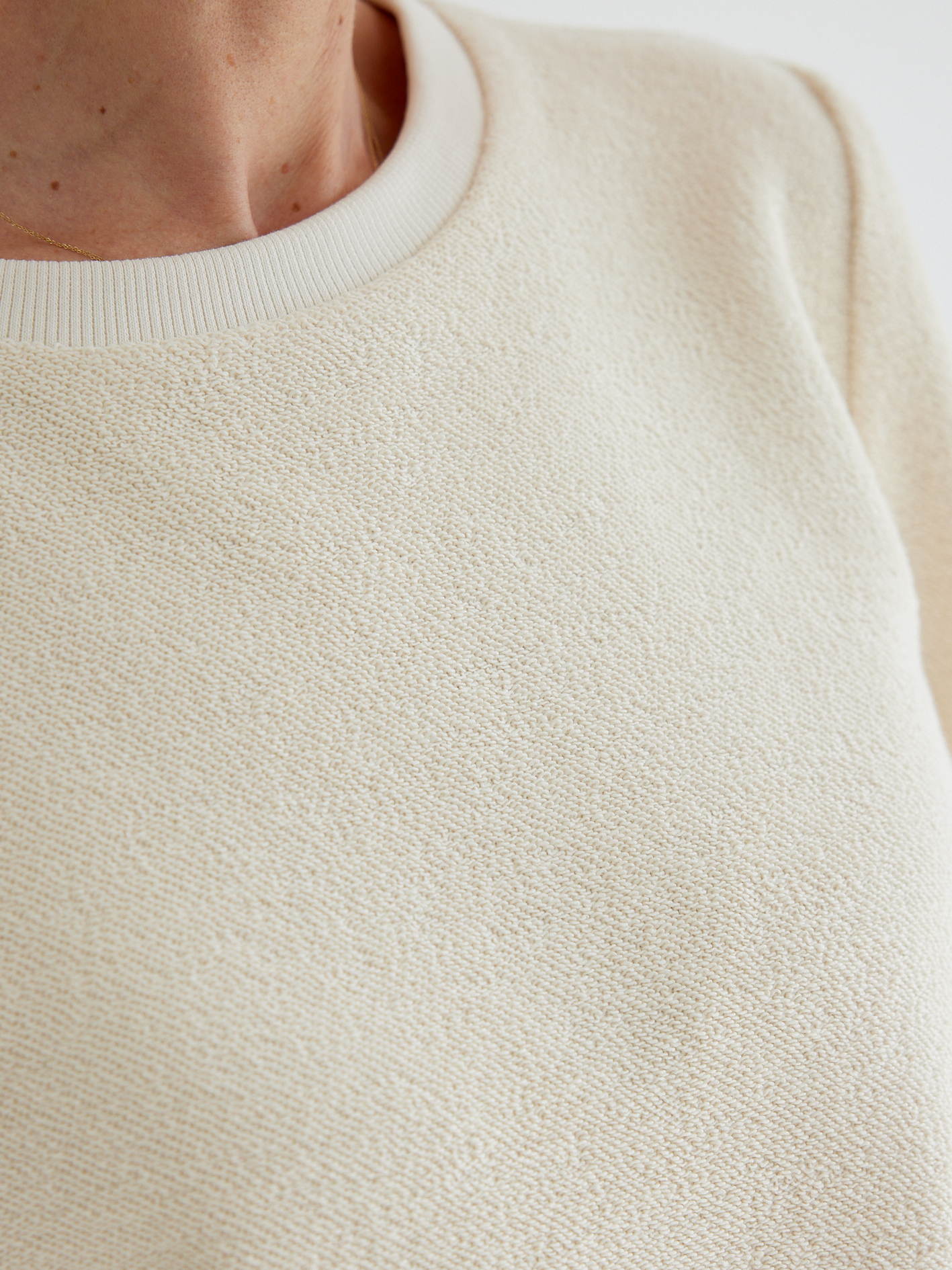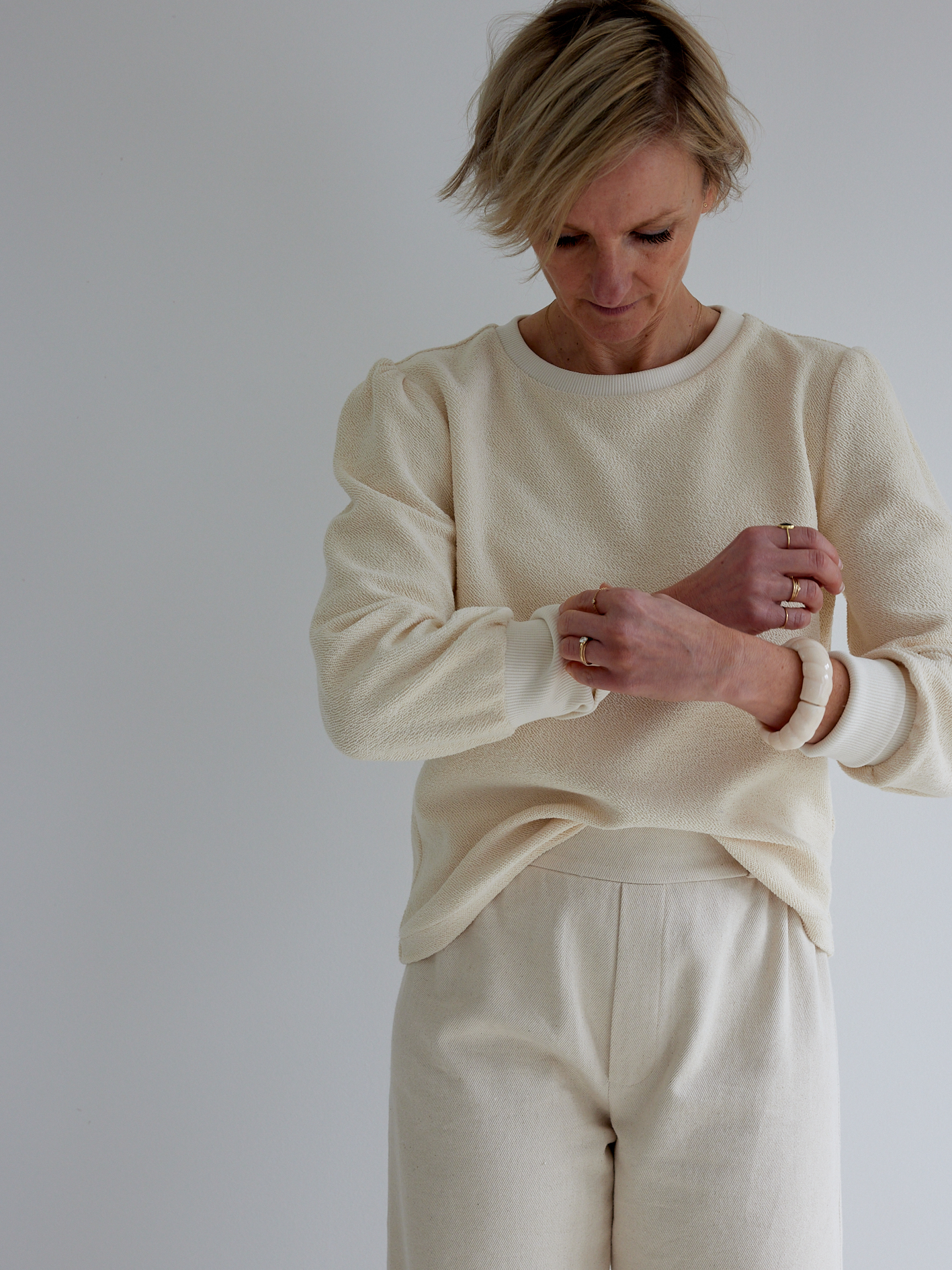 Le top Marcy manches longues en molleton bouclette écru bio – cousu